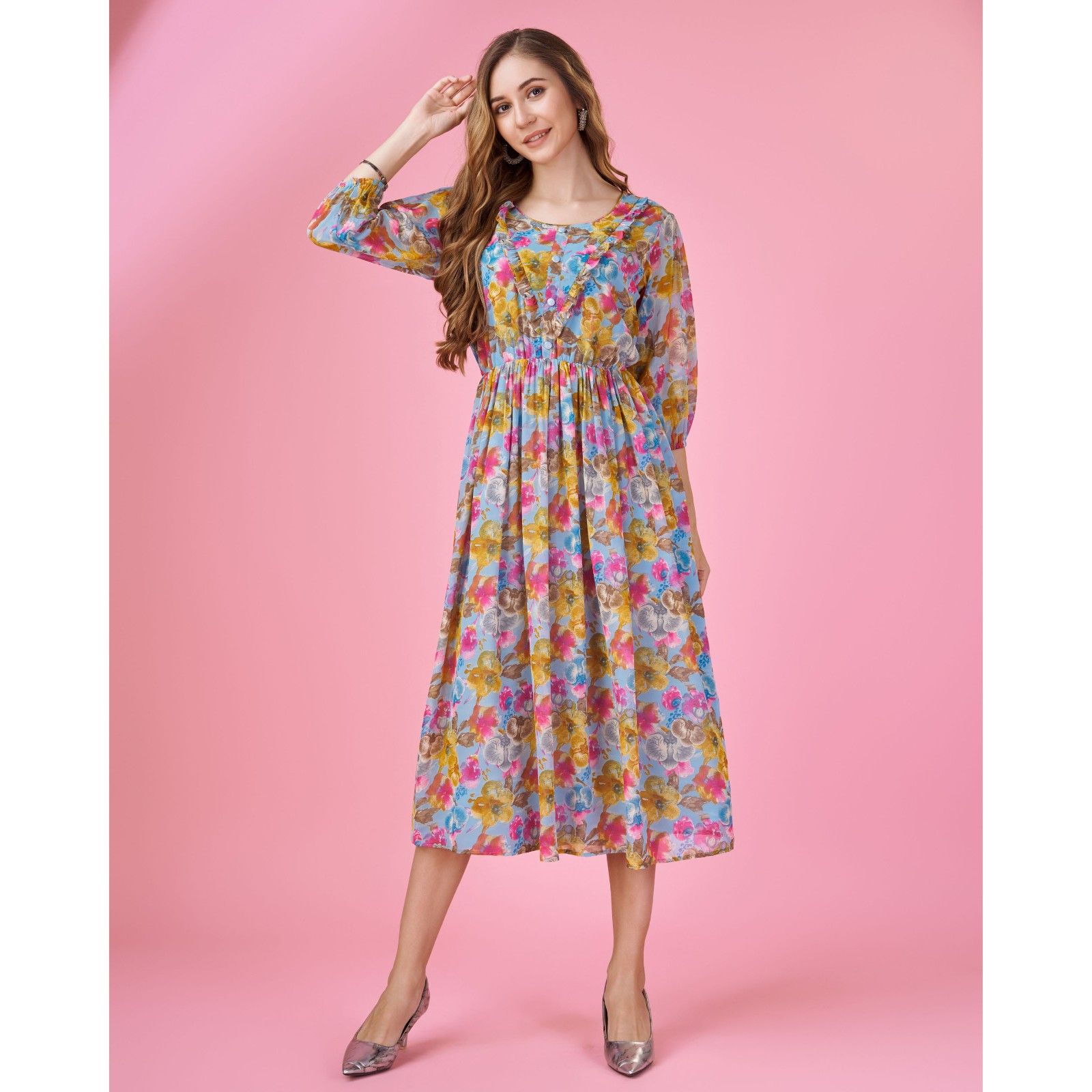 Accessorize this beautiful Indian cotton saree with gold jewelry to add a dash of elegance to the outfit.