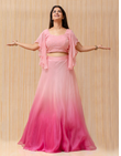 Shaded Blue Pure Organza Skirt with Chikan Mukaish Top