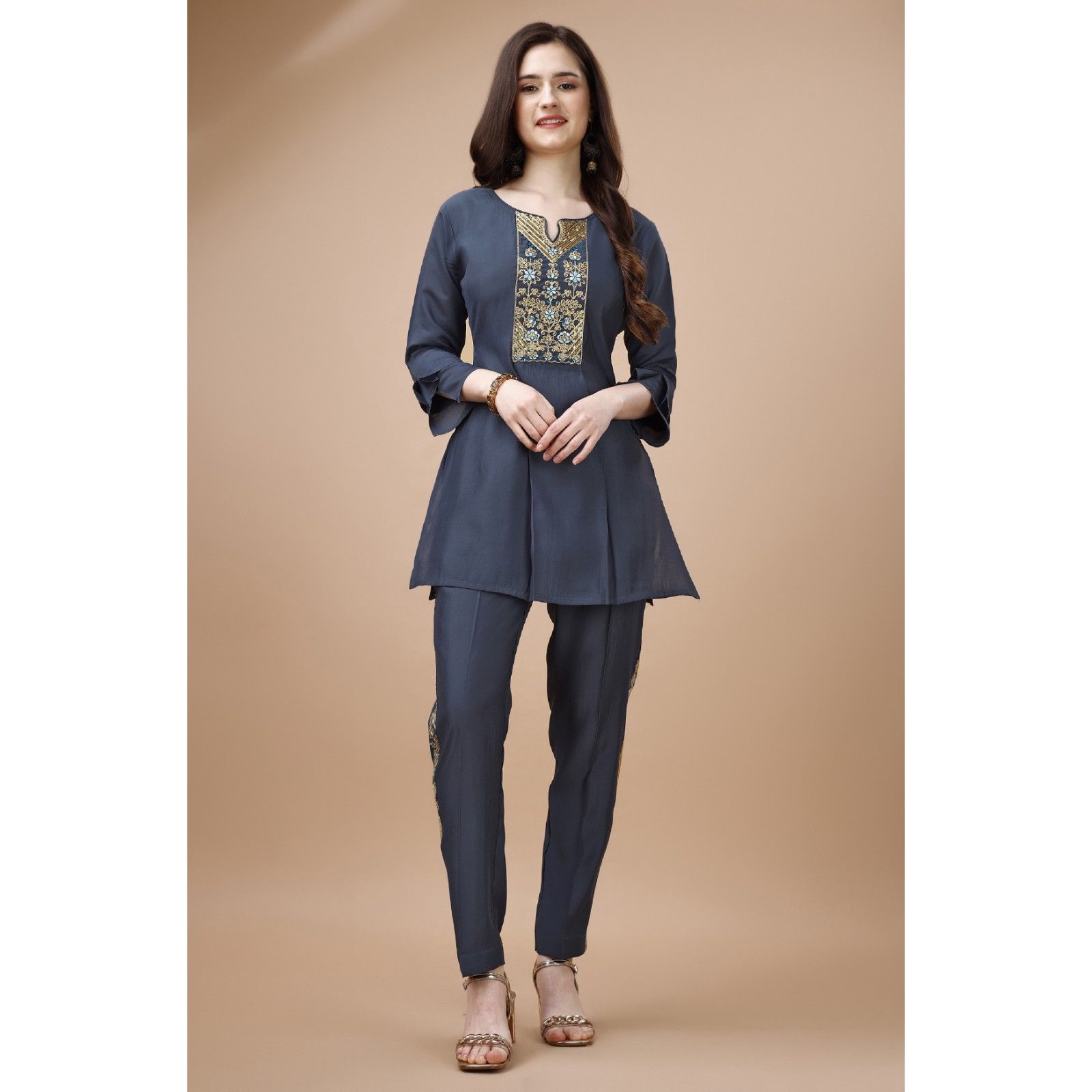 Accessorize this beautiful Indian cotton saree with gold jewelry to add a dash of elegance to the outfit.