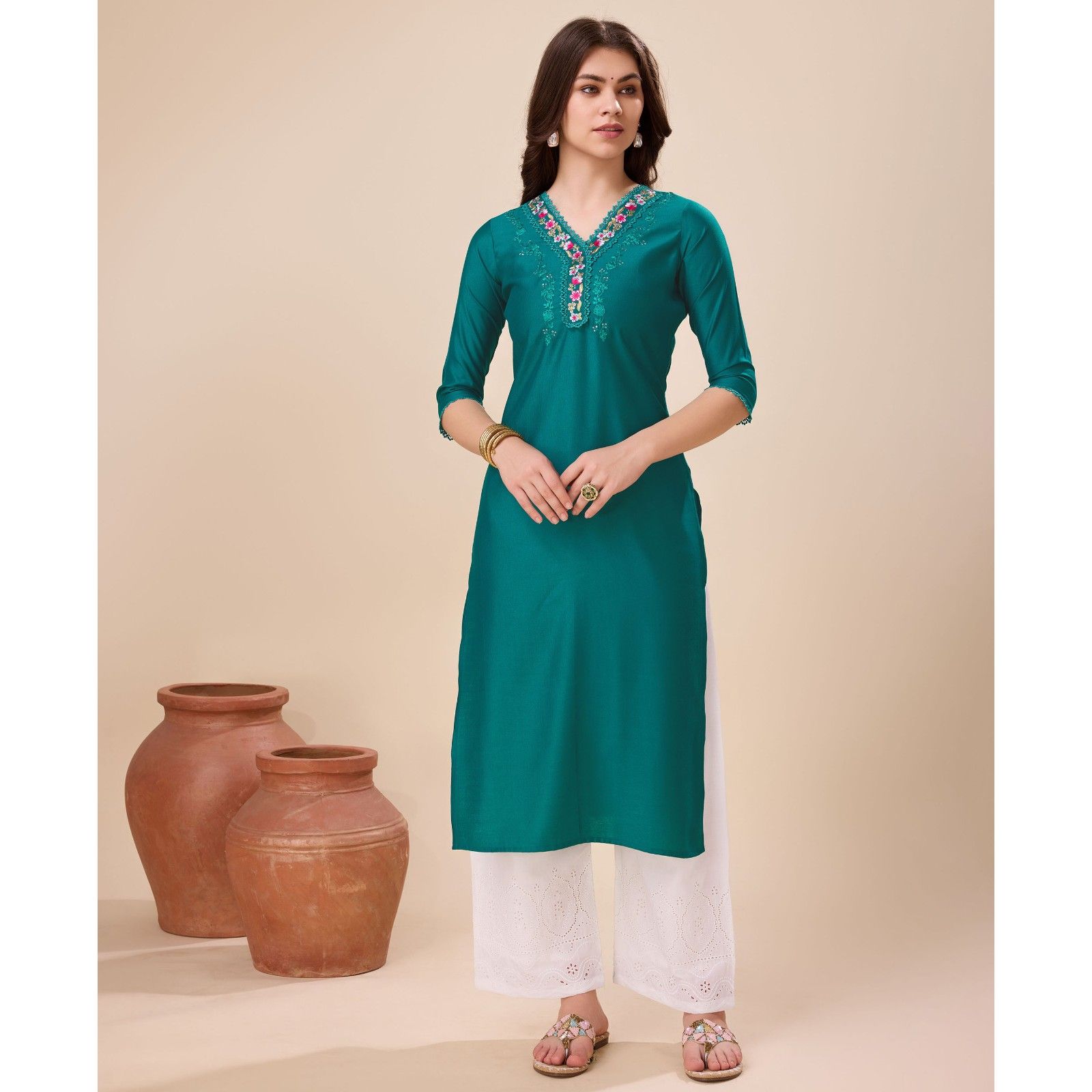Accessorize this beautiful Indian cotton saree with gold jewelry to add a dash of elegance to the outfit.