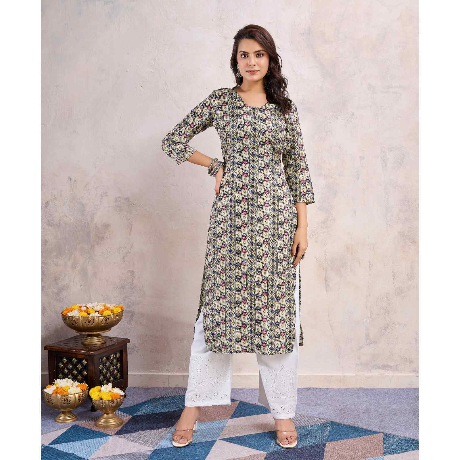 MOJILAA Women's Green Viscose Floral Embroidered Straight Kurta