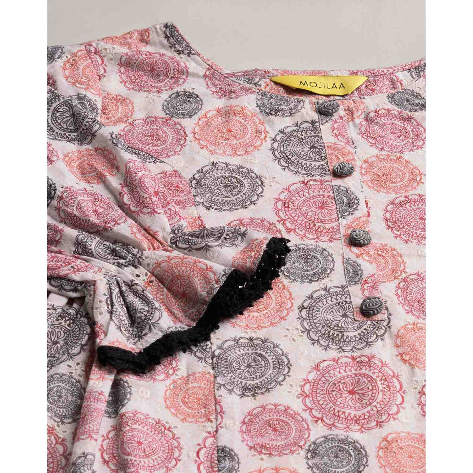Looking for styles that stand out? It is time to look beyond the usual! Make a great addition to your closet with this grey co-ords by MOJILAA. This Botanical Printed Co-Ord Set, has Linen Tunic which features mock button embellishment, 3/4th sleeves, mandarin collar With solid partial elasticated bottom. Club it with contrasting pumps and minimal fashion accessories to get that flawless look.