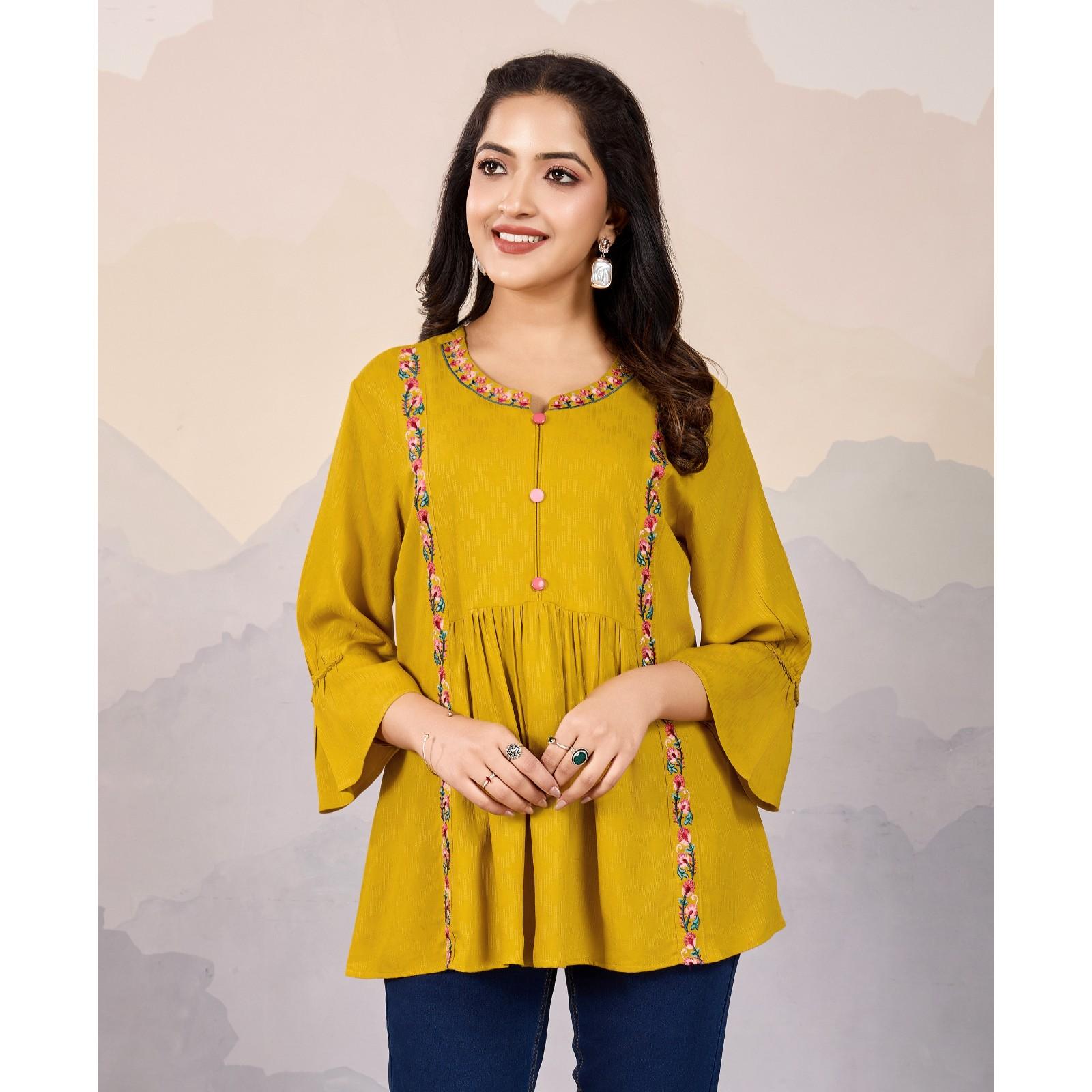 Achieve a magnetic look by wearing this Khaki Kurta from MOJILAA. The linen silk fabric, striped and floral printed pattern and square neckline of this makes it trendy, unique, and attractive. Club it with a palazzo or leggings for complete look.