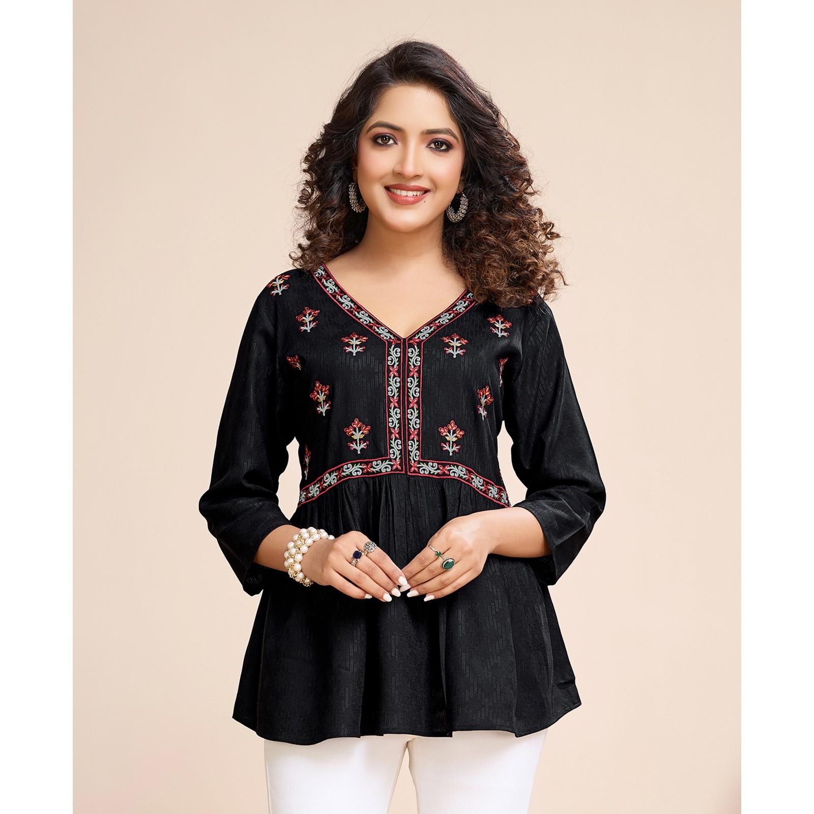 MOJILAA Olive Green Coords-Set is the perfect timeless outfit for your party wardrobe. Crafted out of Viscose Blend fabric, the 3/4th cuffed sleeve, floral embroidered on yoke, box-pleats on waist tunic ensures long-lasting comfort and an overall stylish look. And It comes with relaxed cigarette embroidered pants, adjustable drawstrings at the waist and pockets, this ensemble is a must-have item for any woman's wardrobe.