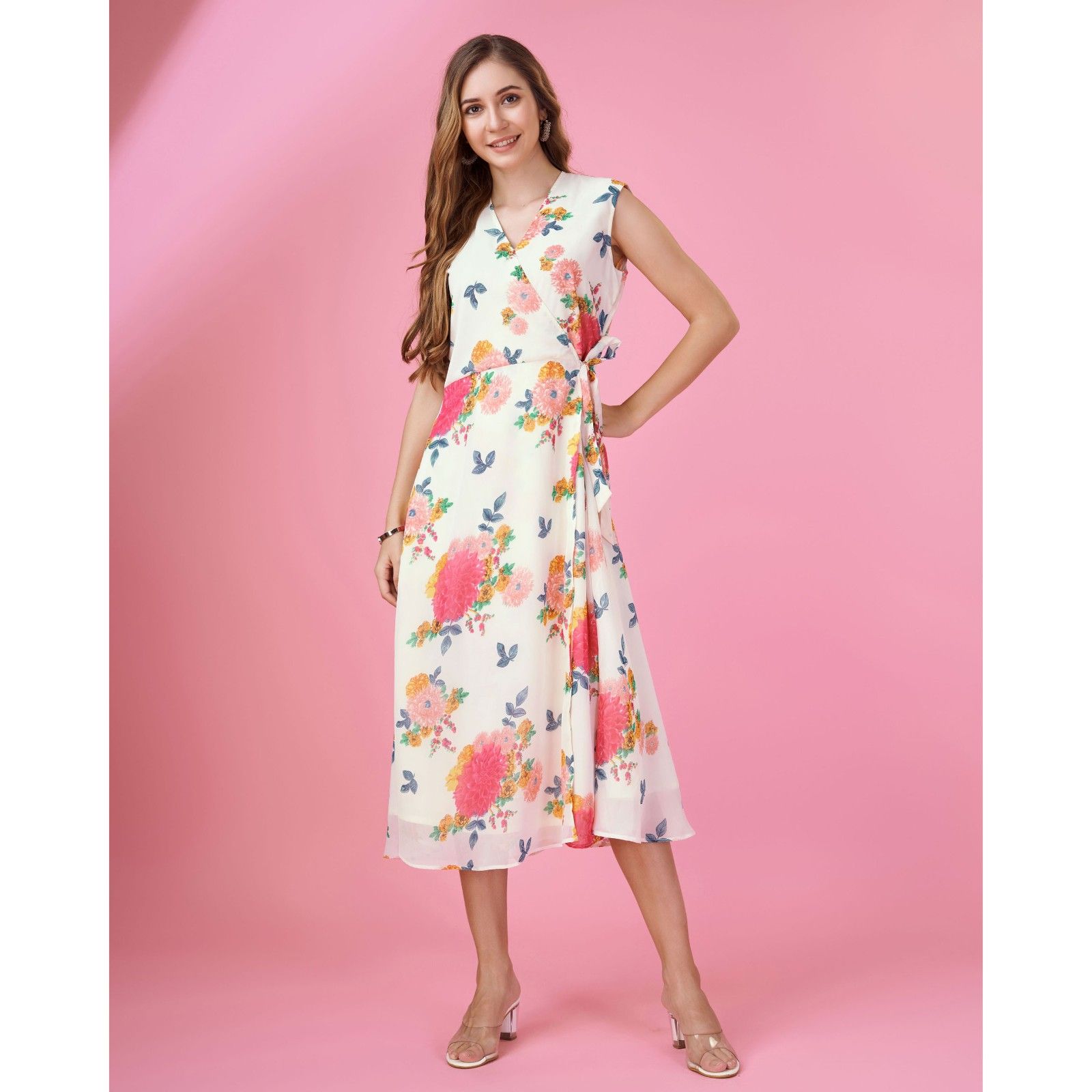 MOJILAA Women's White Rayon Floral & Leaf Printed Causal Co-ord Set